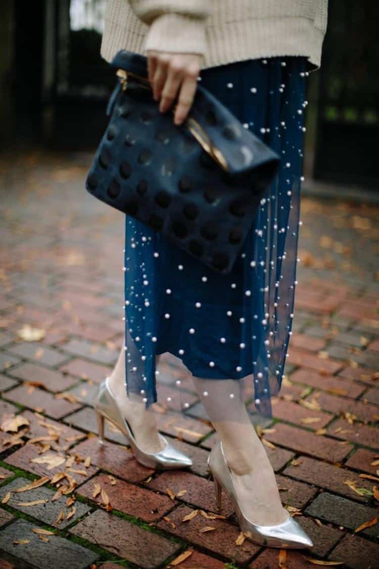 Il est vrai que le tricot XXL tend à estomper les formes, ce qui peut refroidir celles qui mesurent moins d’1m65. Mais rien n’empêche de détourner ce classique en version soirée. Pour féminiser l’ensemble, la jupe crayon et les talons hauts forment un duo gagnant avec un pull ample. Blanc ou noir, ce combo allie simplicité et chic, tout en respectant la tendance oversize. Si l’envie de glamour se fait sentir, osez le jupon long en tulle associé à des ballerines ou des talons. Ce contraste casse le côté masculin du pull tout en créant une silhouette aérienne, pile dans l’air du temps. Pour finaliser la tenue, misez sur des accessoires affirmés : pochette élégante, maxi boucles d’oreilles, manchette graphique… Voilà comment réchauffer ses soirées sans jamais abandonner le style.