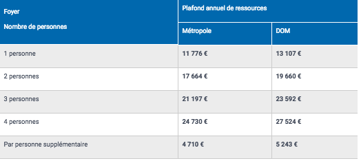 Les ressources ne doivent pas dépasser 1 393€ par mois. Sinon, vous devrez mettre votre main dans la poche pour payer la totalité des frais.